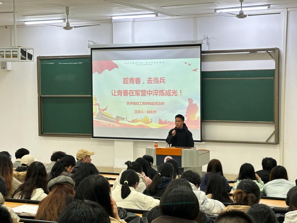 最后,由徐永杰老师详细介绍征兵相关政策,徐老师结合自身经验,就包括征兵条件、报名流程、优待政策及服役发展前景等重点,解读大学生征兵专项优惠措施。号召符合条件的学生响应国家号召,积极投身国防事业,在军营中锤炼意志、增长才干,为国家国防建设贡献青春力量。