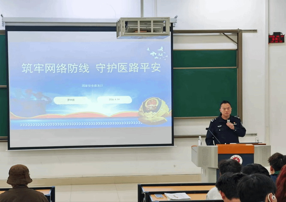 讲座围绕 “筑牢安全防线,守护校园平安” 主题展开,主讲人结合当前国际国内安全形势,系统解读了总体国家安全观的核心内涵,详细阐释了政治安全、网络安全、科技安全、信息安全等重点领域内容。针对医学信息工程专业特点,重点剖析了在学术交流、数据管理、网络使用中的安全风险与防范要点。通过典型案例剖析,警示师生警惕境外势力渗透、严防信息泄露、规范网络言行。