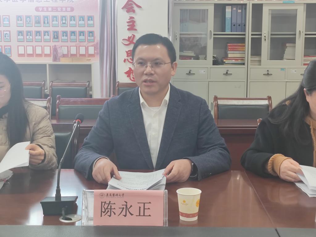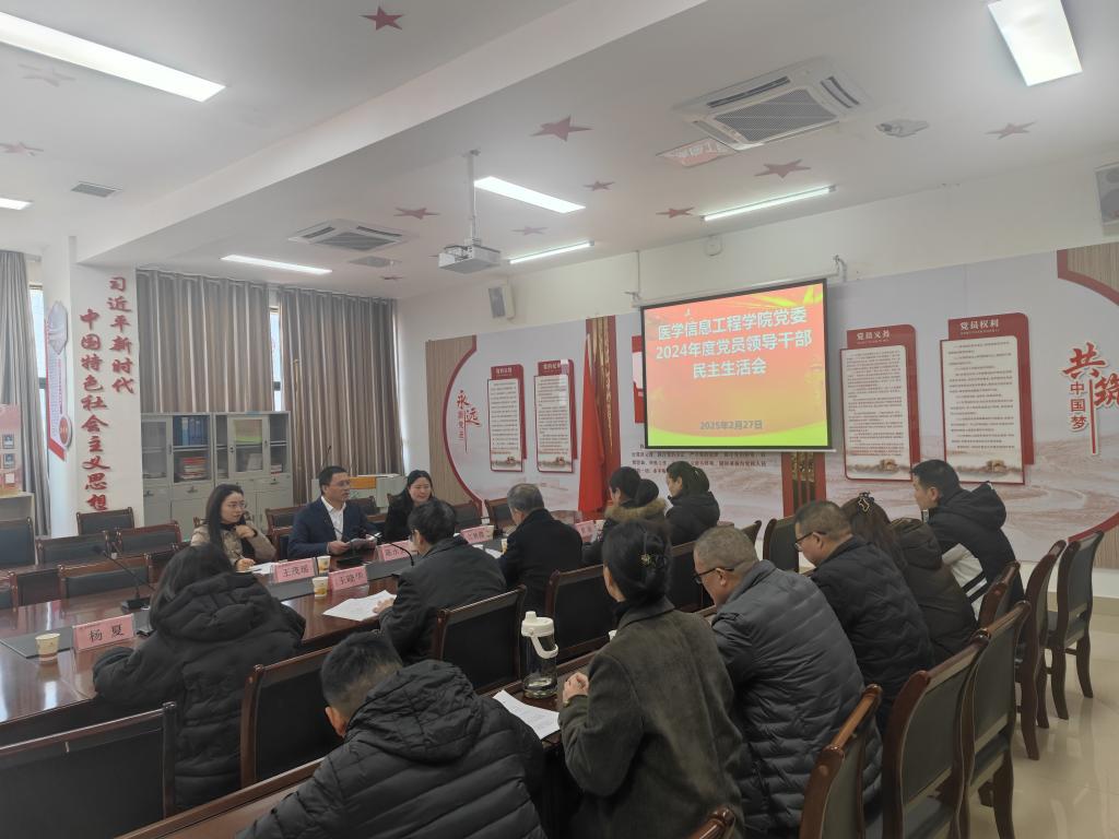 2月27日下午,医学信息工程学院党委在学院会议室召开2024年度民主生活会。学校党委委员、副校长陈永正出席并作点评讲话,学校党委组织部副部长江秋霞和组织部组织科工作人员到会指导。学院党委书记李岩主持会议;学院党委班子成员参加会议;邀请了党内外人士代表列席会议。