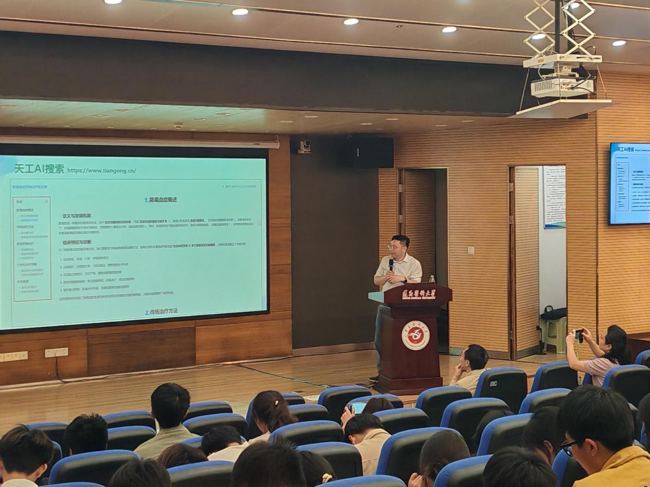 讲座伊始,赵文龙教授通过一个个实例引入主题,深入浅出的讲解了Deepseek类大模型的发展,并讲解了其对于简化实验节省实验经费方面的重要贡献。接下来,赵教授分别就AI、AIGC、Deepseek等通用型人工智能模型进行了简要介绍。进一步列举了一些用于学术研究的常见AI模型,如豆包、Aminer、天工等,并结合实例进行了讲解。最后,赵教授也告诫同学们不要太过于依赖AI,对于AI的使用要适当,一定要结合实际问题进行自己的思考。