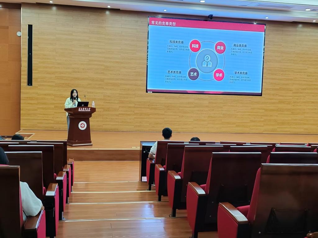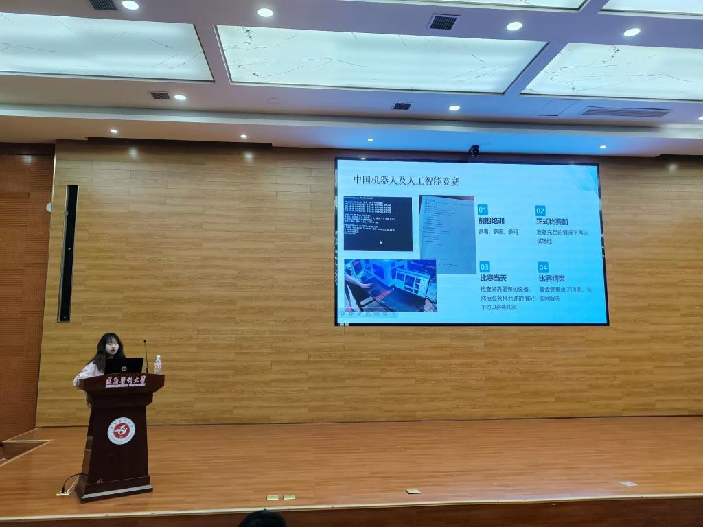 活动开始,罗旭副院长进行致辞,他谈到学科竞赛对个人成长和学院发展的重要意义,详细列举了学院各专业学科竞赛的方向,鼓励同学们主动积极参与到学院学科竞赛活动中,通过以赛促练,以赛促学,不断提升自我的综合素养。接着,由各年级学生代表展示学科竞赛的丰硕获奖成果,讲述了从竞赛前筹备、竞赛过程到竞赛结果整个环节的关键点,分享了在竞赛中的经验与体悟,如团队协助至关重要,明确分工,注重实践经验积累等内容,视频、作品、动画等多形式演示,抓住了大家的好奇心和求知欲,让同学们收获满满,进一步激发了同学们的学科竞赛兴趣。