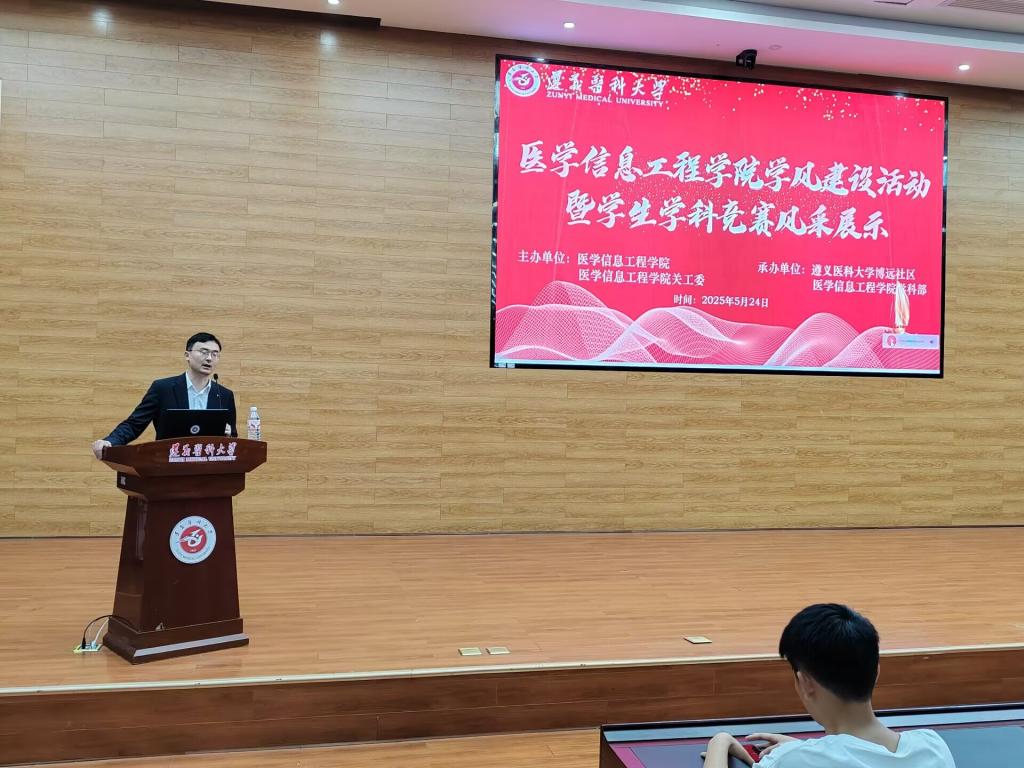为弘扬优良学风,提升学院学生学习能力和科研水平,培养同学们团队的组织协作能力。医学信息工程学院于5月24日下午两点在道德讲堂组织开展了学生学科竞赛成果展示活动,学院副院长罗旭,党委副书记刘畅,全体辅导员及全体无课班级学生参加了本次活动。
