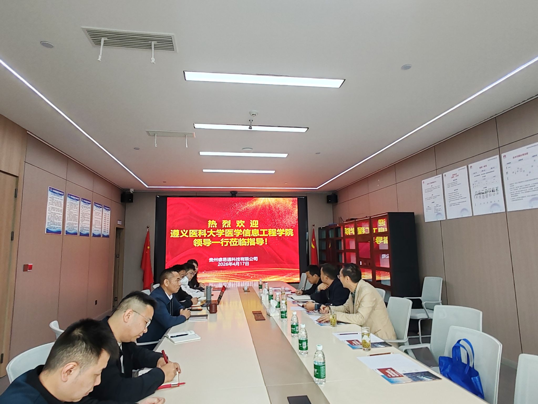 为深化产教融合、拓宽学生实习就业渠道,4月17日,医学信息工程学院赴贵州睿易通科技有限公司开展访企拓岗工作。校企双方围绕学生实习就业、人才培养、校企项目合作等事项进行座谈交流。学院党政主要领导,教务科负责人、辅导员老师参加访企拓岗工作。