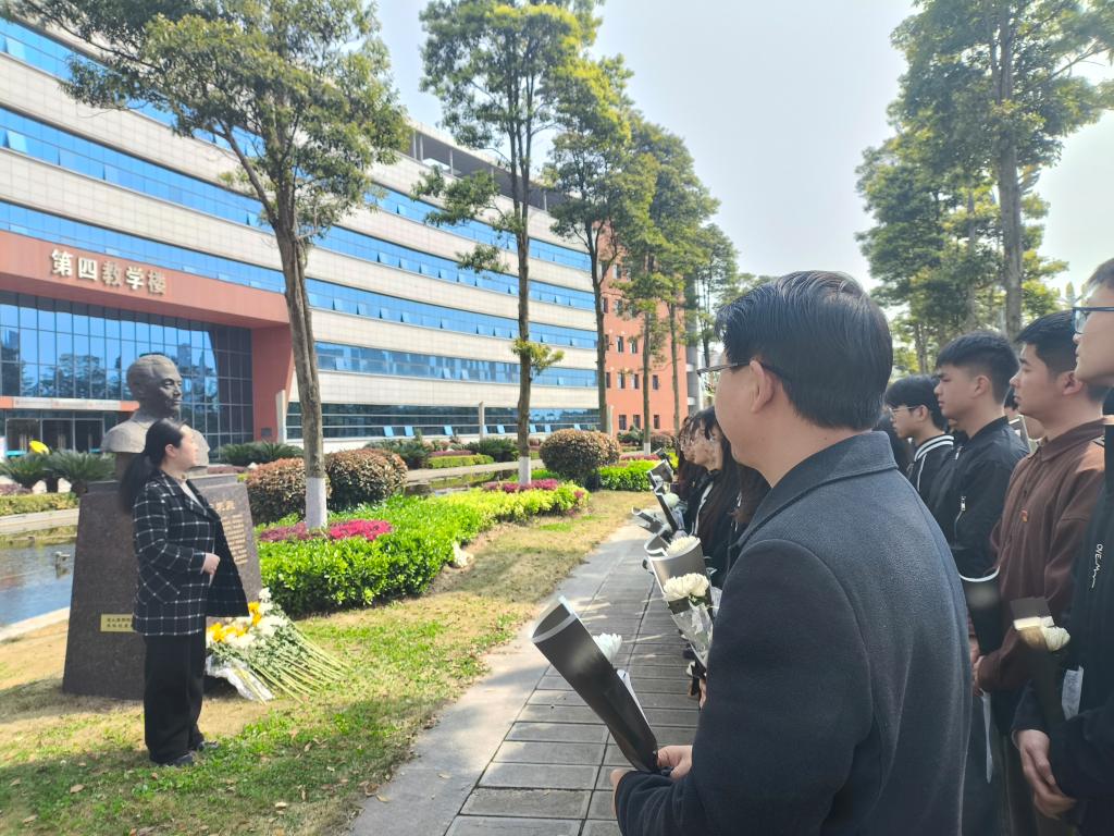 随后,全体师生依次向先贤雕塑敬献献花,寄托缅怀与哀思。献花完毕,全体师生向先贤雕塑鞠躬致敬,每个人都在心底表达着对先贤最深切的悼念。