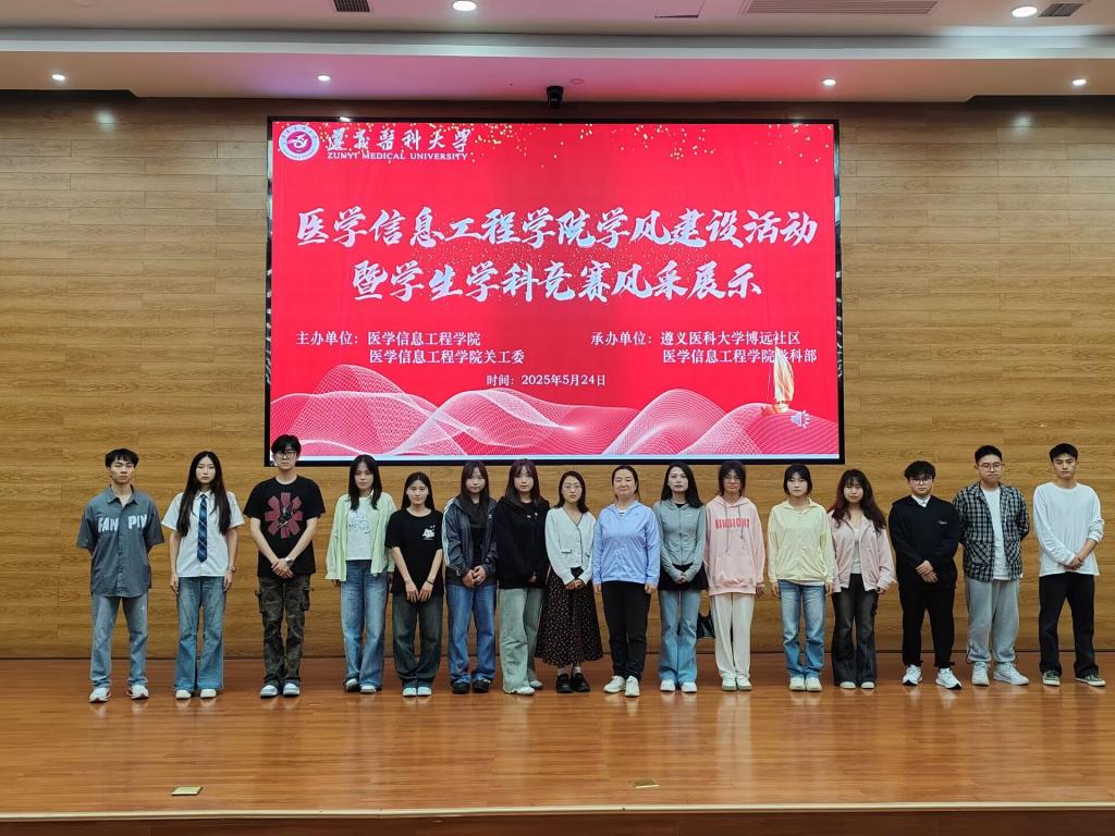 为弘扬优良学风,提升学院学生学习能力和科研水平,培养同学们团队的组织协作能力。医学信息工程学院于5月24日下午两点在道德讲堂组织开展了学生学科竞赛成果展示活动,学院副院长罗旭,党委副书记刘畅,全体辅导员及全体无课班级学生参加了本次活动。
